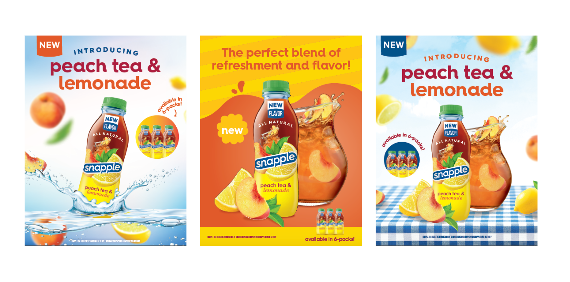 In 2025, Snapple will launch Snapple Peach Tea Lemonade as part of its growing product lineup. To support this introduction, I developed three key visuals:
